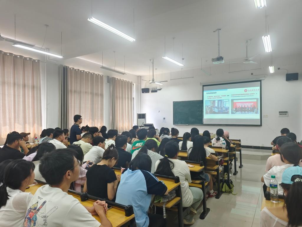 2025年9月19日上午10:10,财经楼116教室内气氛热烈,一场为财经学子量身打造的考研专业宣讲会在此拉开帷幕。本次宣讲会由江西财经大学陈肖华和陈剑两位老师受邀主讲,财经学科部党总支书记曹国华主持,财经学科部共计100余名学生参加了此次宣讲会。