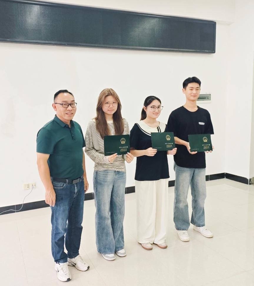 2025年10月14日,财经学科部主任王加灿在财经楼321会议室为学生颁发了证书。