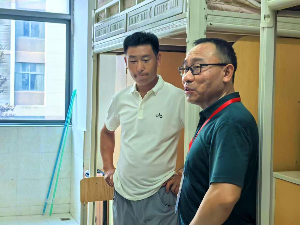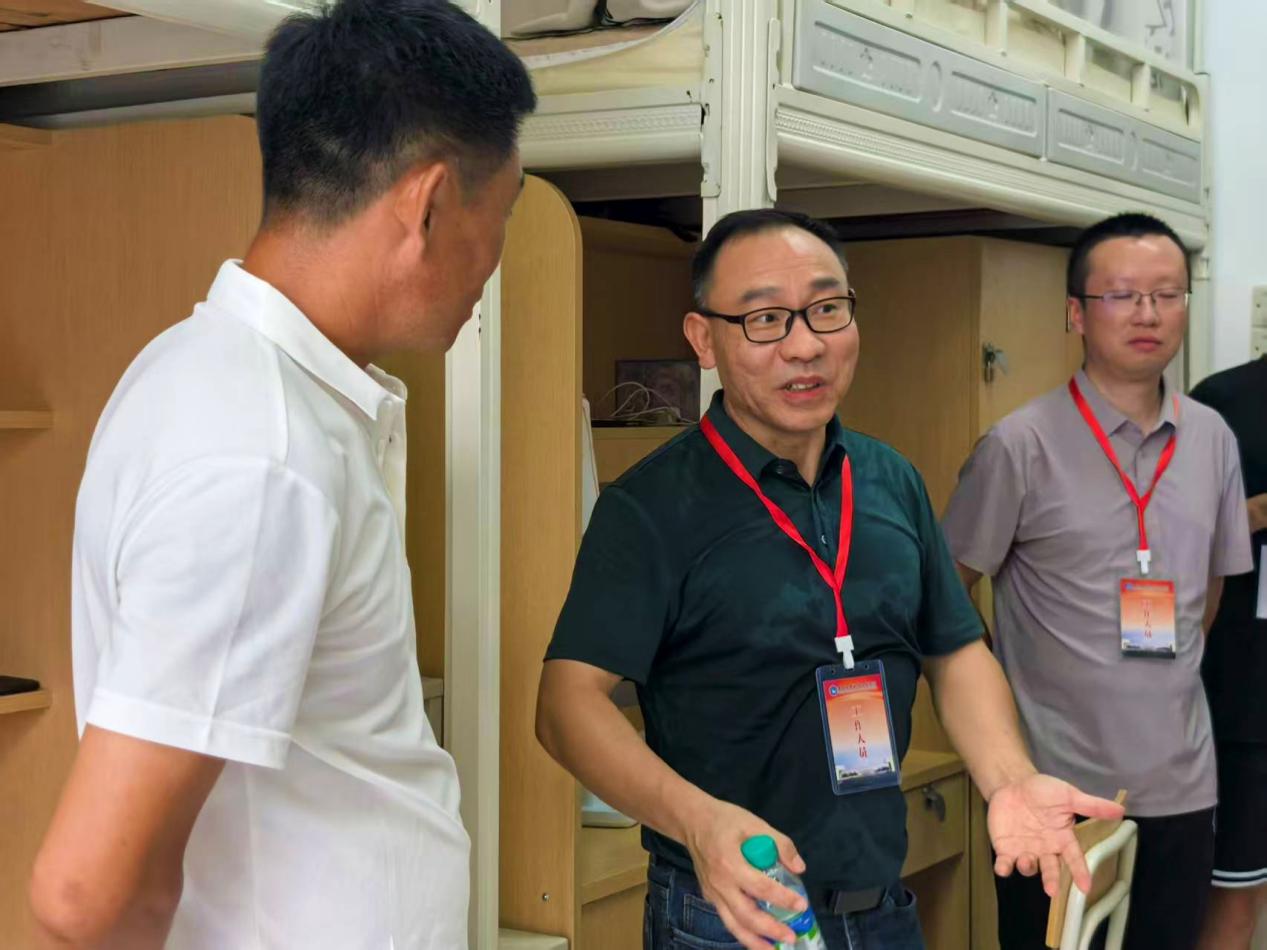 来到宿舍后,曹国华亲切询问了新生的家庭情况与来校行程,反复叮嘱大家时刻谨记交通财产安全、谨防电信诈骗,将自身安全放在首位。随后,王加灿就大学生活规划提出建议,鼓励同学们主动拥抱科技浪潮,善用AI工具提升学习效率,同时科学规划时间,积极投身学科竞赛与社团活动,拓展自身视野、提升综合能力。胡友君强调了遵守校规校纪的重要性,希望同学们尽快适应并融入集体生活。老师们还细致检查了用电设施,提醒同学们杜绝使用违规电器,强化用电安全意识,共同维护安全、整洁、和谐的居住环境。