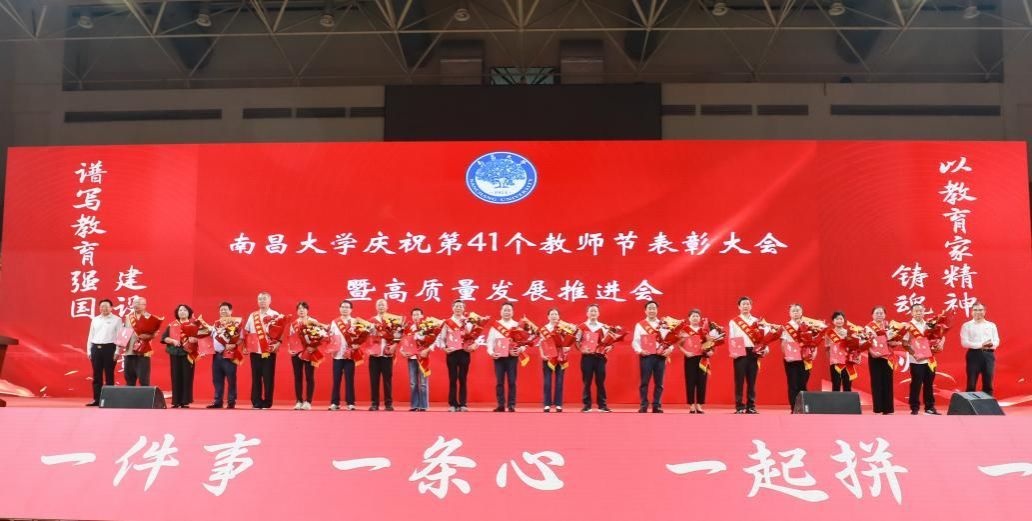 本网讯(记者朱文芳)“以教育家精神铸魂强师,谱写教育强国建设华章。”9月10日,学校召开庆祝第41个教师节表彰大会暨高质量发展推进会,进一步铭记关怀、牢记嘱托,认清形势、统一思想,找准方向、明确任务,激发动力、凝聚合力,以时不我待、只争朝夕的紧迫感形成攻坚“双一流”、推进高质量发展和建设“江西底色中国特色的世界一流大学”强大力量。