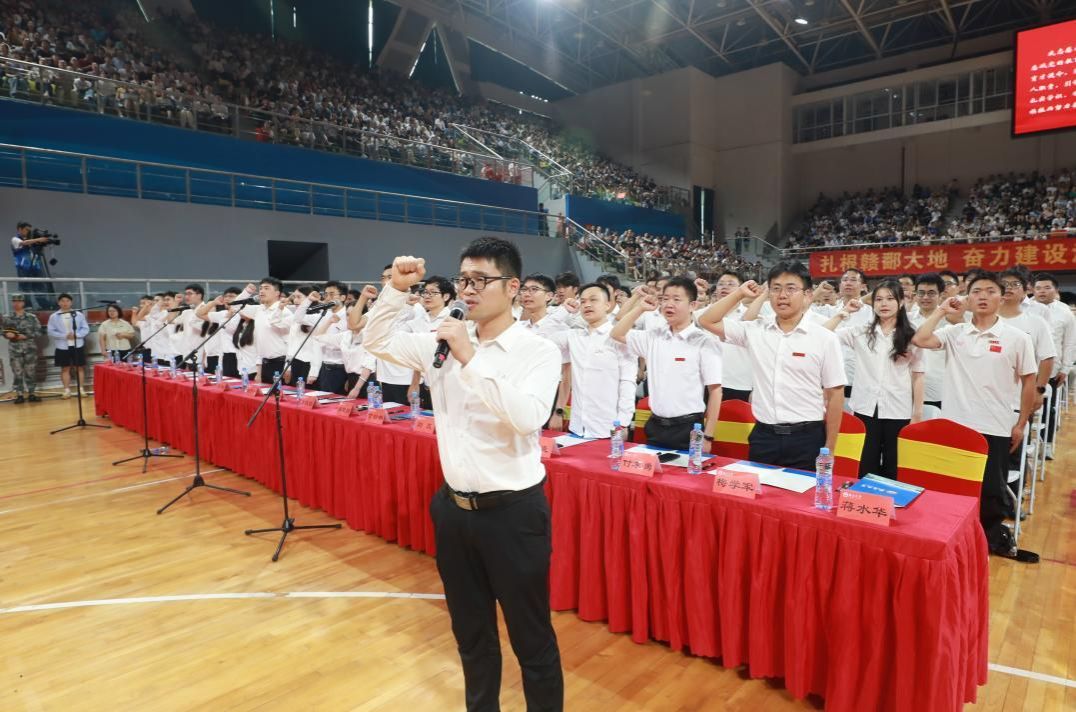 “我志愿成为一名人民教师,忠诚党的教育事业,遵守教育法律法规,履行教书育人职责,引领学生健康成长……”国家优秀青年基金项目获得者、江西省五一劳动奖章获得者、工程建设学院蒋水华带领新入职教师庄严宣誓,立志弘扬良好师德师风,在新征程中知责、明责、尽责,潜心立德树人,执着科研攻关,为建设具有“江西底色中国特色的世界一流大学”作出新的更大贡献。