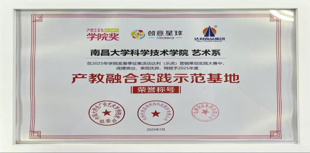 近期,中国大学生广告艺术节学院奖(以下简称“学院奖”)2025年春季大赛评审结果揭晓。我院“劲虎先锋队”学子在涂娟、寇嫒丽、朱冰三位老师的精心指导下,凭借出色的专业能力与创新实践,一举斩获全国三等奖2项,并获得“产教融合实践示范基地”荣誉称号。