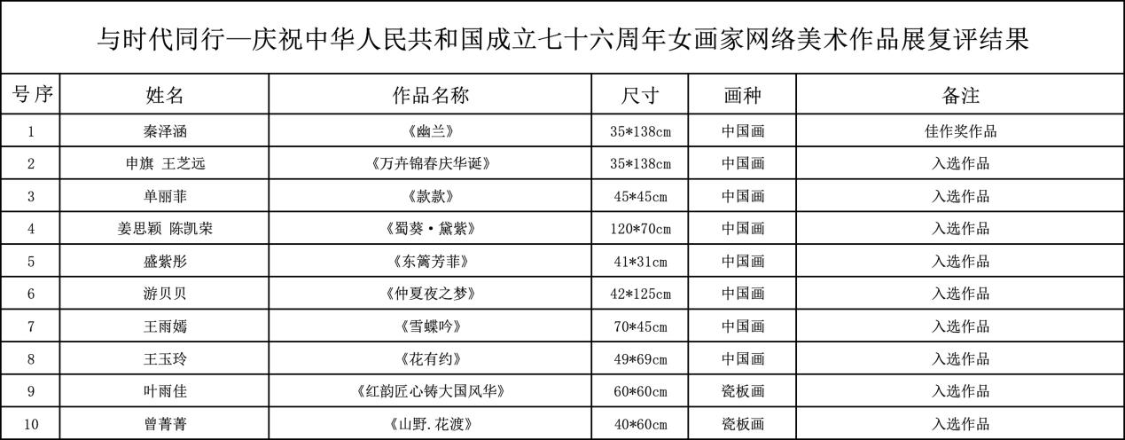 【喜报】我院艺术系在与时代同行——庆祝中华人民共和国成立七十六周年女画家网络美术作品展中喜获佳绩
