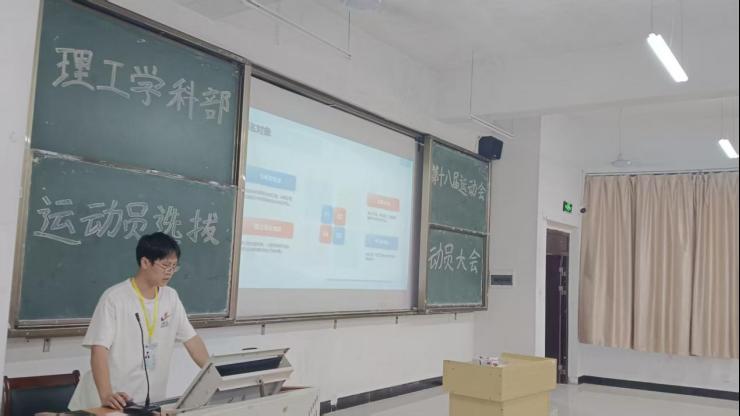 10月9日下午,理工学科部召开第十八届运动会运动员选拔动员大会。理工学生会活动部大二考核期成员黄霑担任主讲人。
