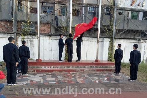 最后由学工处处长吴胜林宣布本学年半军事化管理正式启动,主持人宣布升旗仪式结束,全体师生有序退场。