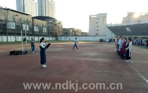 10月10日上午7时,学院于南区田径场开展了新生半军事化管理的首次升旗仪式,而作为学院的一份子的理工学科部积参加本次升旗仪式。