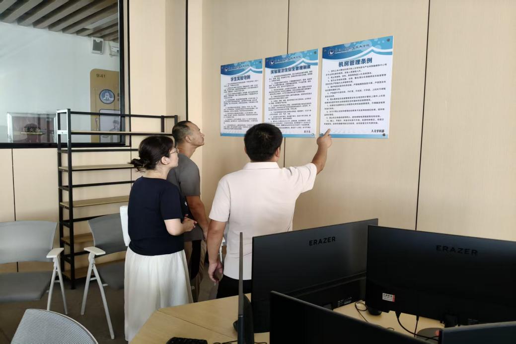 人文学科部党总支书记肖轮刚,学科部副主任寇嫒丽,综合办主任徐华及实验室管理人员占文海、傅荣辉参加此次检查。