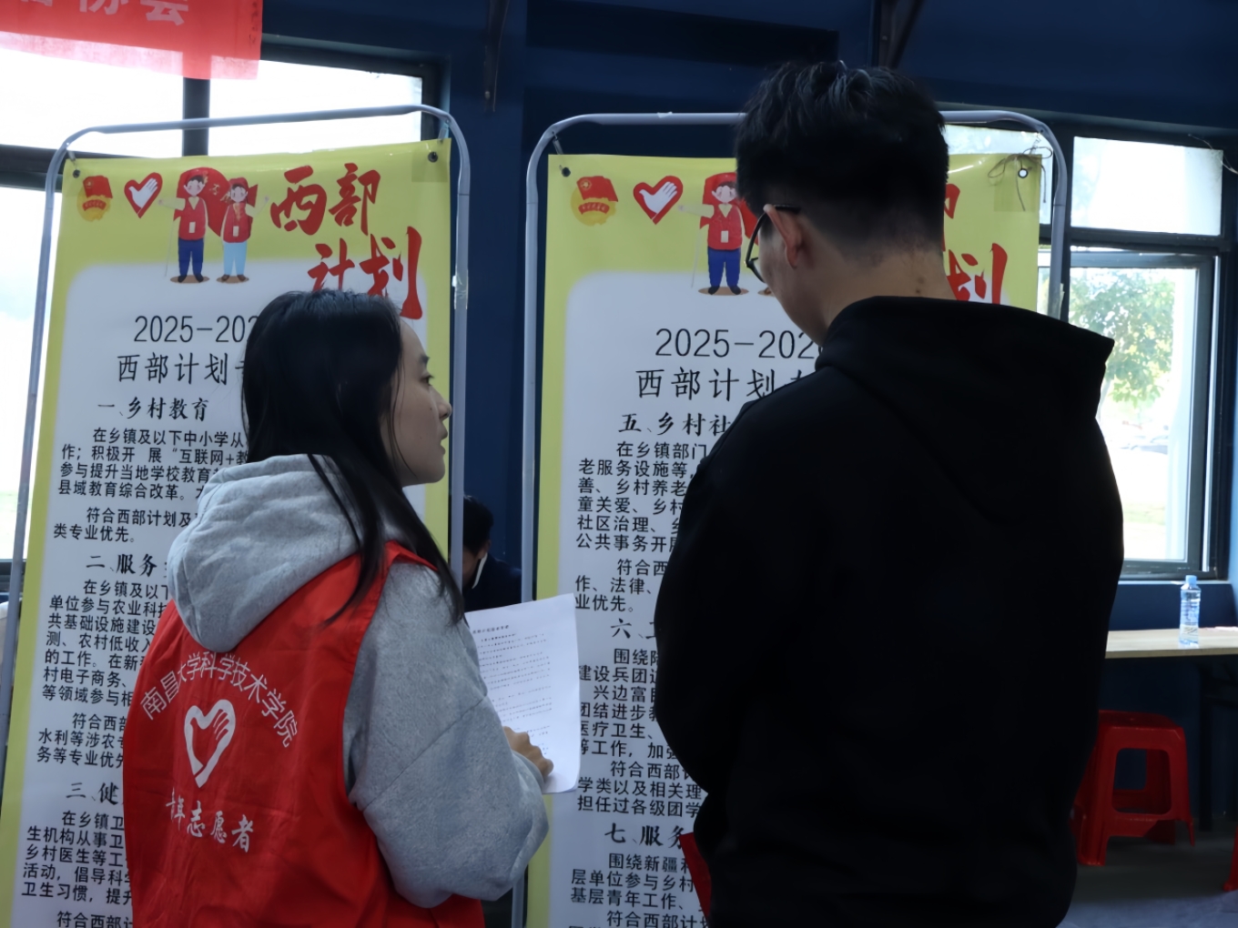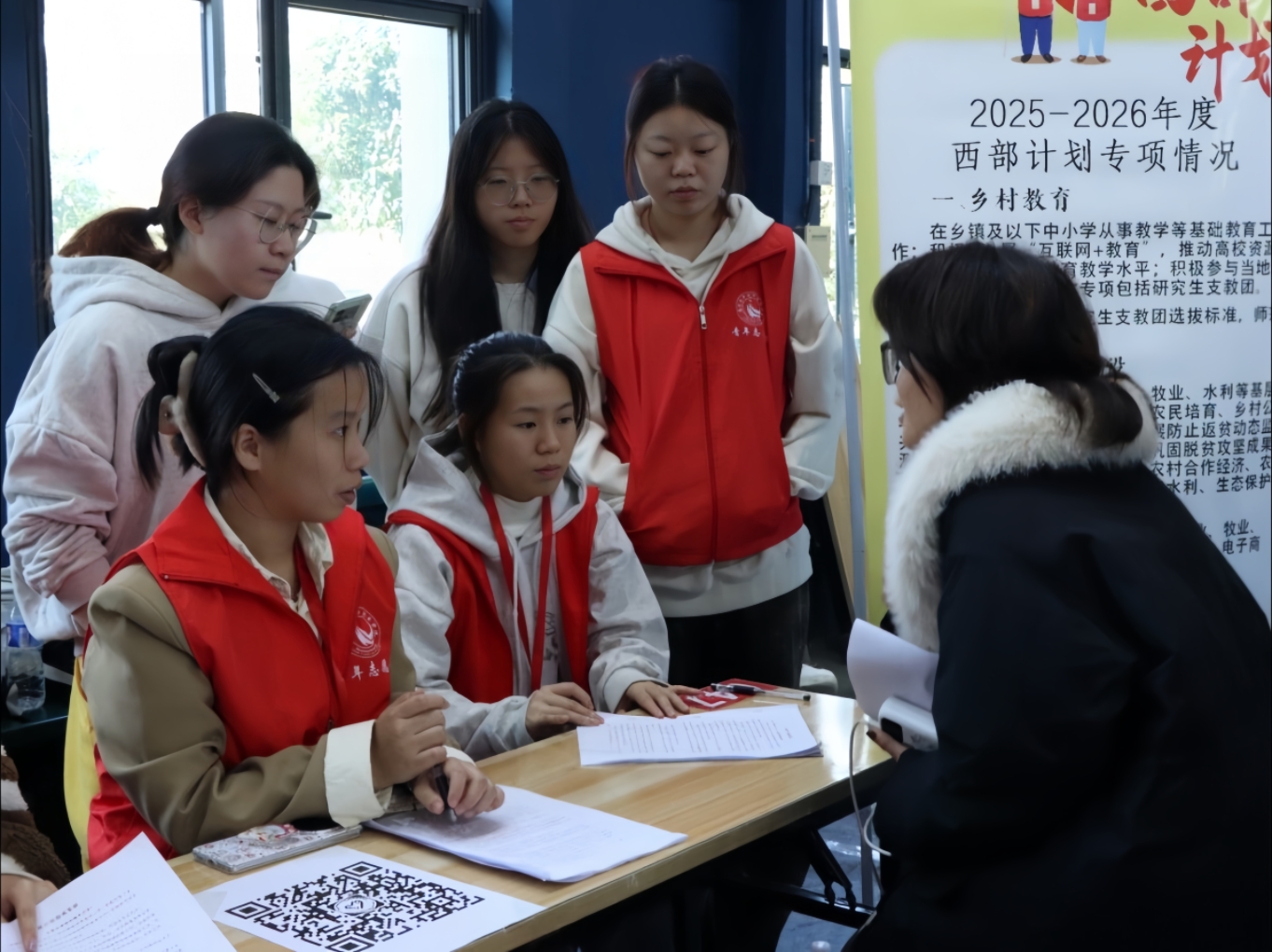 答疑点现场,志愿者们针对学子重点关注的报名流程、岗位匹配、就业支持政策、生活保障待遇等问题,逐一进行专业细致的解答。通过清晰的讲解,助力学院学生全方位了解西部计划,为他们探索职业发展新路径、了解基层就业机遇,认识和选择政策性岗位就业搭建起了桥梁和纽带。