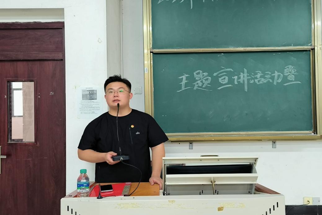 会议伊始,杨天浩带领大家重温九三阅兵仪式片段,希望同学们能够从中受到启发,为中国式现代化贡献青春力量。本次团课分为两个部分,第一部分围绕“践行团员使命,传承五四荣光”展开。首先,杨天浩带大家了解了共青团的团旗、团徽、团歌等基础知识,并且对团员义务进行了详细的讲解,强调同学们要明确团员的责任和义务,紧接着提到了共青团的光荣历史和代表人物,所谓“以史为镜可以知兴衰,以人为镜可以明得失。”通过历史的启示、榜样的力量,为新生们提供精神指引,做有理想、敢担当、能吃苦、肯奋斗的新时代好青年。