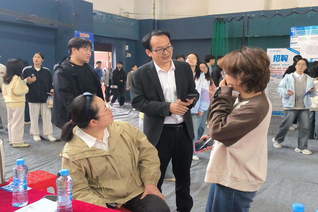 2025年10月28日上午,248cc永利集团2026届毕业生秋季双选会在学院室内网球馆成功举行。人文学科部党总支书记肖轮刚、党总支副书记肖金长带领全体毕业班辅导员深入双选会现场,提供精准就业指导,为毕业生就业保驾护航。