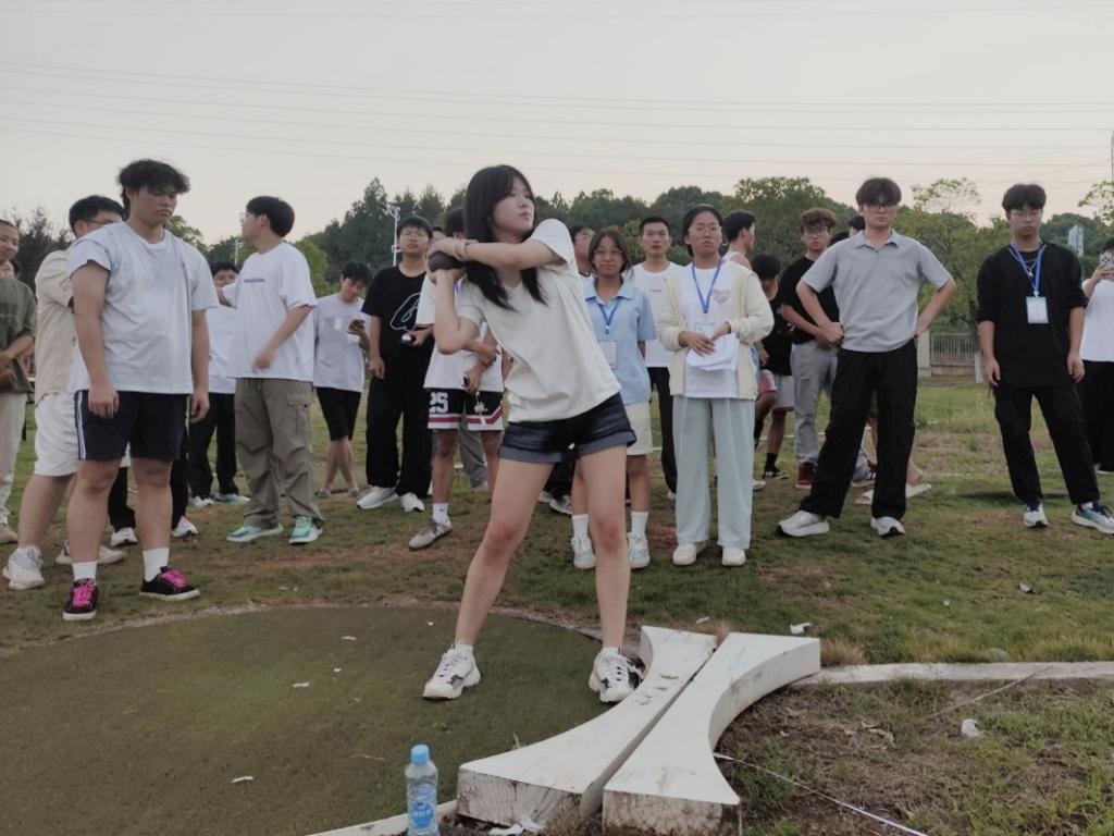 田径赛道上,选手们步伐坚定、全力冲刺,耳畔的呐喊声与脚步声交织,奏响了最激昂的青春乐章。在跳远场地旁,选手们反复斟酌助跑距离与起跳时机。每一次腾空,都向着更远的距离迈进。铅球选手则稳稳扎住脚步、奋力投掷。铅球在空中划出的轨迹,不仅展现了他们的力量,更是对自我极限的挑战。